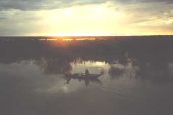 Sunset on the Slow Boat from Seam Reap (Angkor) to Phoem Penn. |